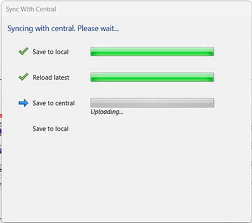 Next, it reloads any information that you did not have that your colleagues would have synced. Then it saves all your changes to the Central file (on ACC). And lastly, it again saves a local copy in the CollaborationCache.